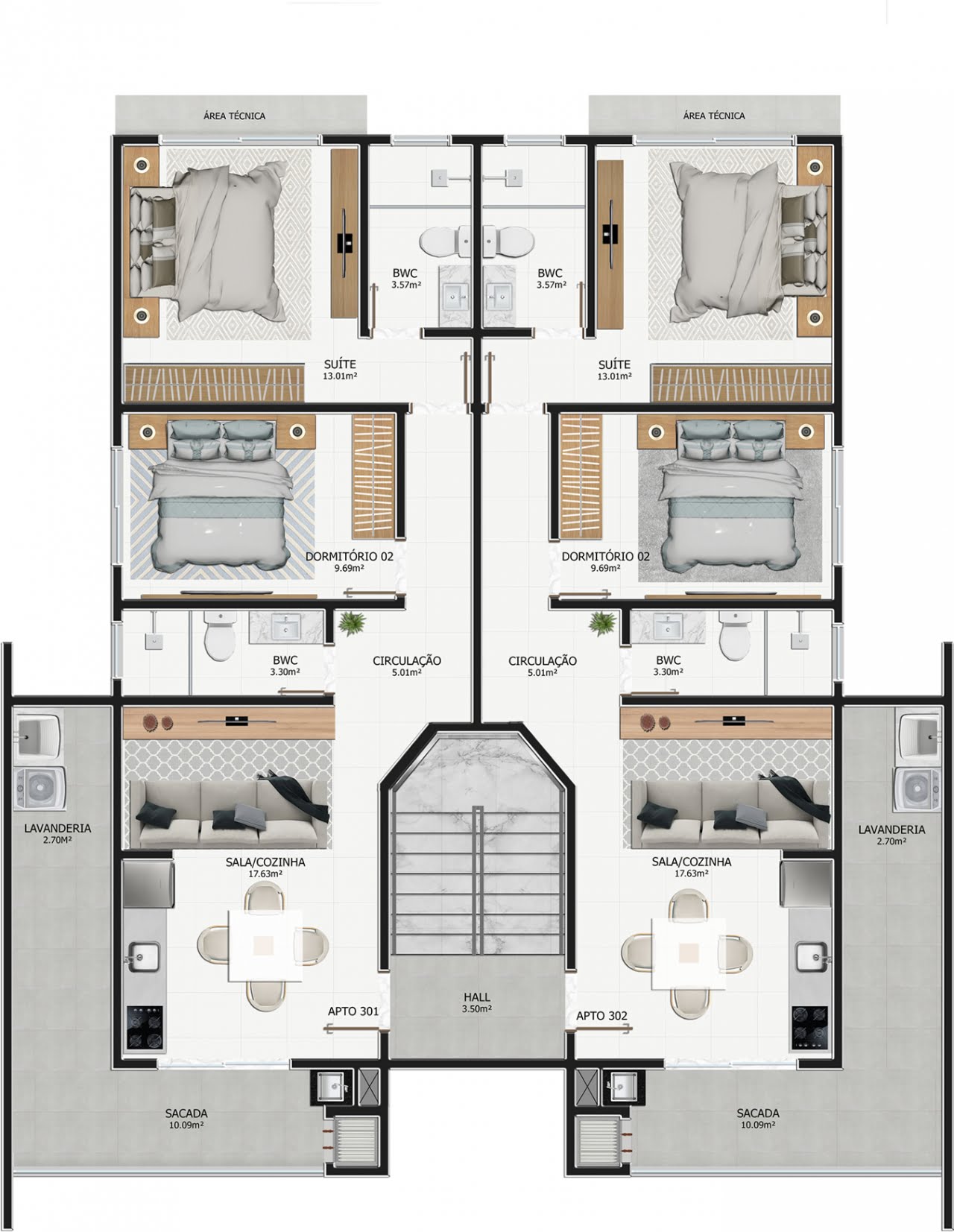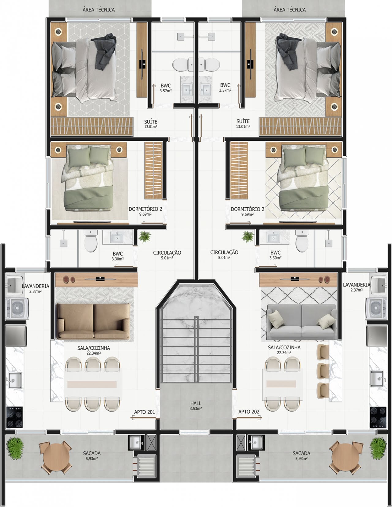 - Apartamentos de 75m² e 99m²
